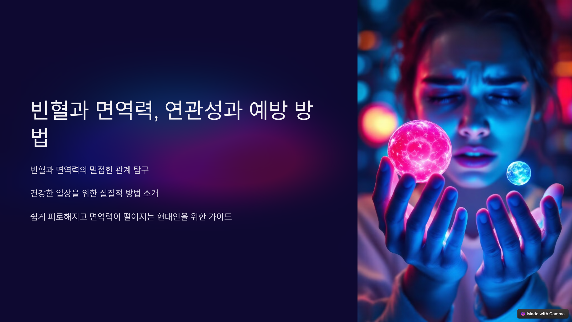 여러분은 혹시 쉽게 피로해지고 면역력이 떨어지는 느낌을 받아본 적이 있나요? 빈혈은 단순히 어지러움만 유발하는 증상이 아닙니다. 빈혈은 우리 몸의 면역력과 밀접하게 연결되어 있는데요. 특히 현대인들의 불규칙한 식습관과 스트레스는 빈혈과 면역력 저하를 동시에 유발하기도 합니다.
