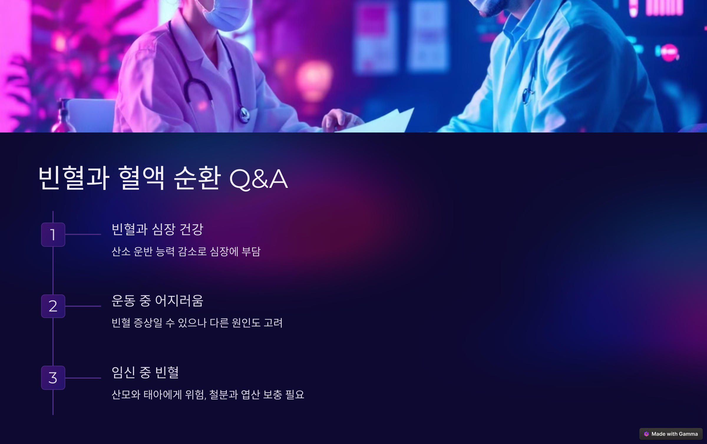 빈혈은 피곤함, 두통, 어지러움 같은 증상을 유발할 뿐 아니라, 심할 경우 심장에 추가적인 부담을 줘 혈액 순환 문제를 악화시킬 수 있어요.