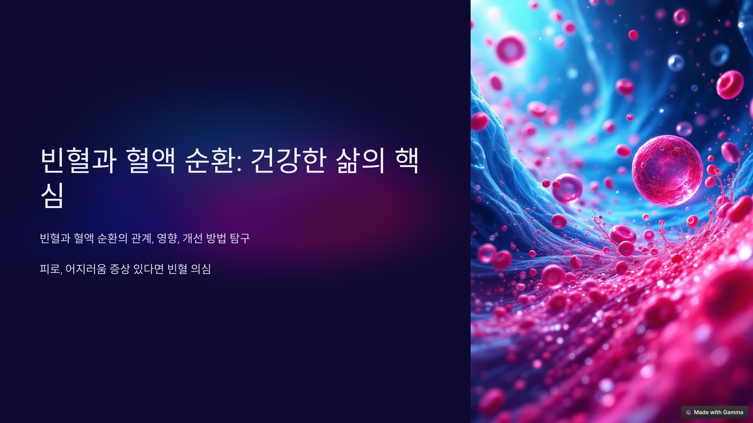 여러분, 피곤하고 어지러운 느낌이 자주 드시나요? 이런 증상이 계속된다면 빈혈을 의심해볼 수 있어요. 빈혈은 혈액 순환에 큰 영향을 미칠 수 있는데요. 이 두 가지가 우리 건강과 어떻게 연결되어 있는지, 그리고 이를 개선하기 위해 어떤 노력이 필요한지 자세히 알아보겠습니다.