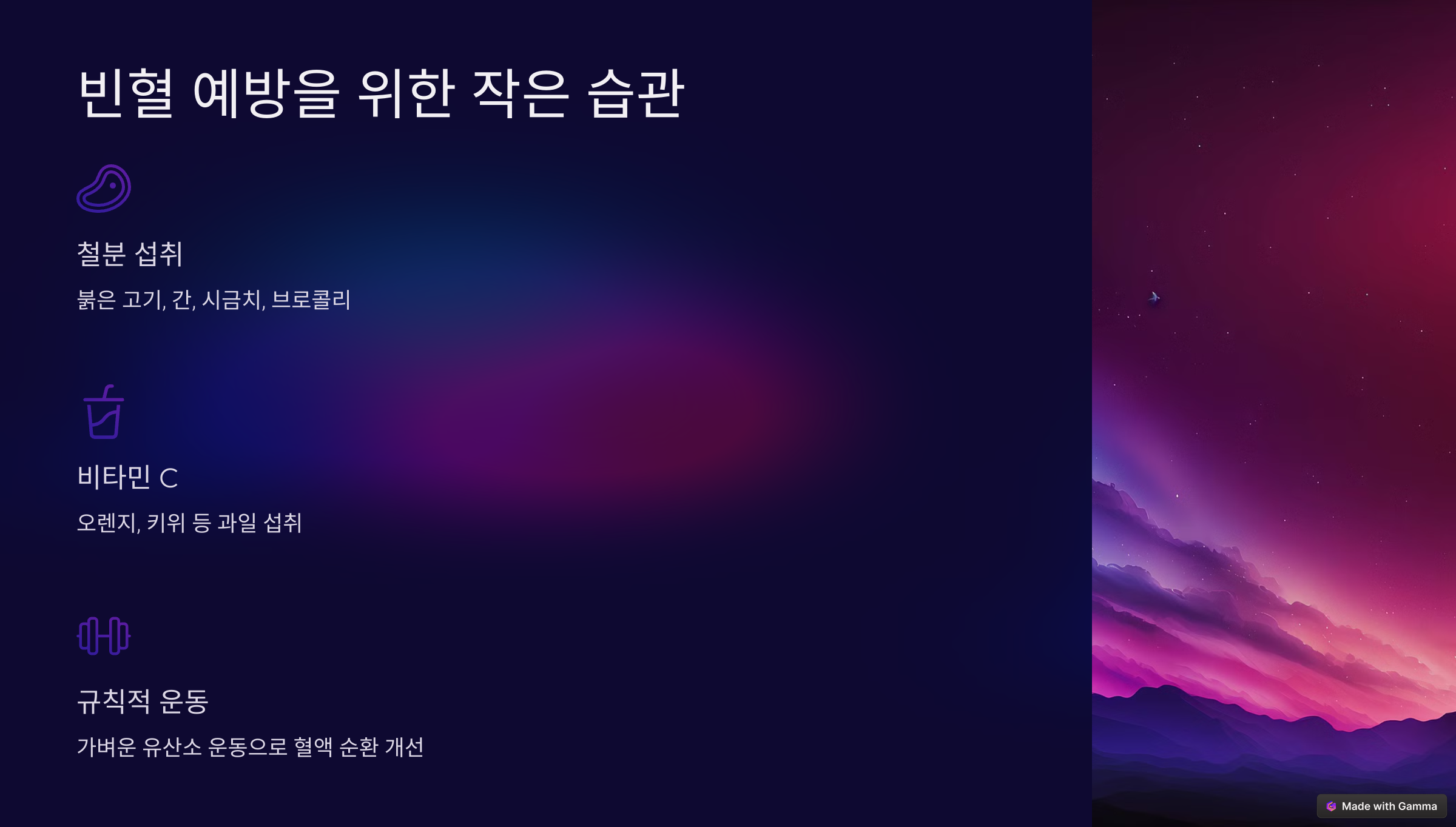 빈혈 예방을 위해 생활 속에서 실천할 수 있는 방법도 함께 알아볼까요?