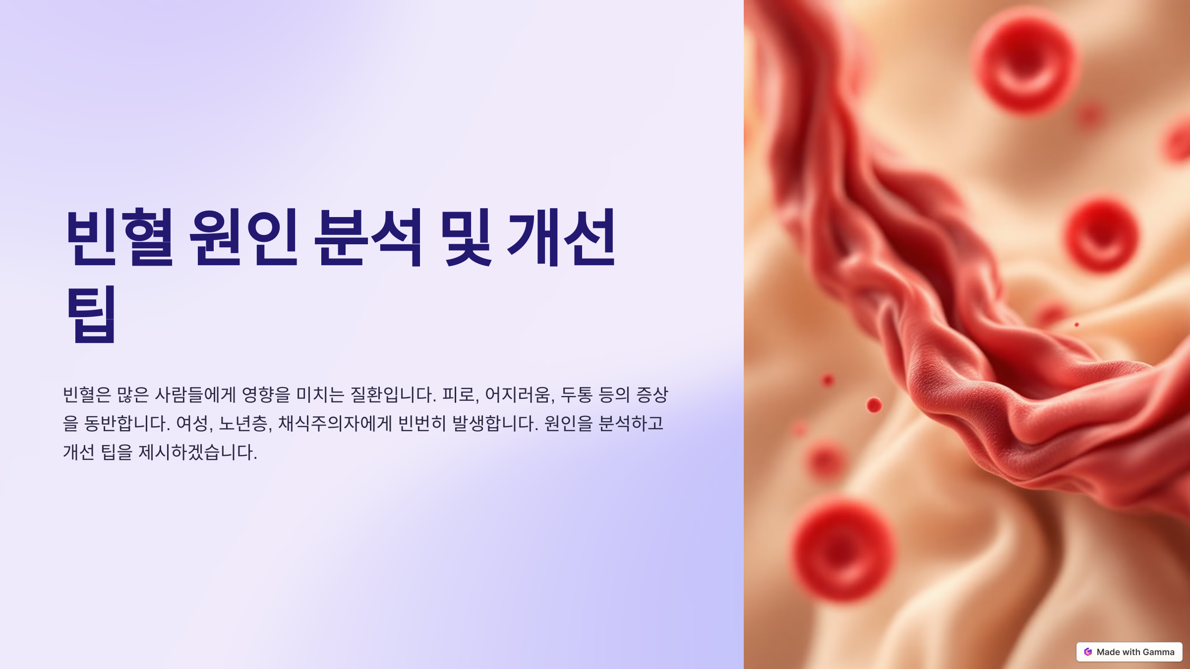 빈혈은 전 세계 많은 사람들에게 영향을 미치는 질환 중 하나로, 피로, 어지러움, 두통 등의 증상을 동반하여 일상생활에 큰 영향을 줍니다. 특히, 여성이나 노년층, 채식주의자 등 특정 인구 집단에서 빈혈이 빈번하게 발생합니다. 이 글에서는 빈혈의 주요 원인을 분석하고, 이를 개선하기 위한 팁을 제시하여 건강을 회복하는 데 도움을 주고자 합니다. 🩸