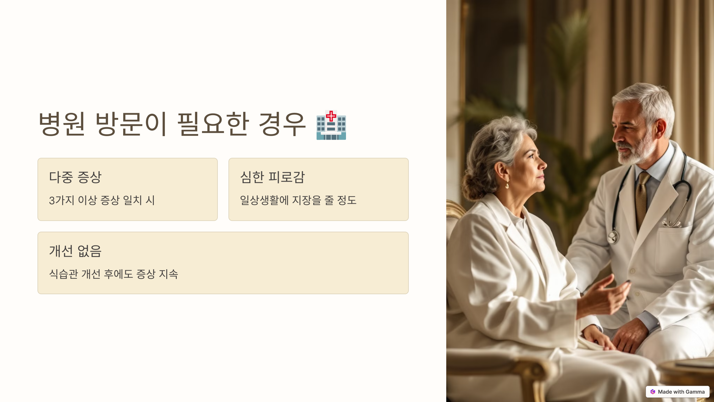 - 일상생활에 지장을 줄 정도로 피로감이 심할 때